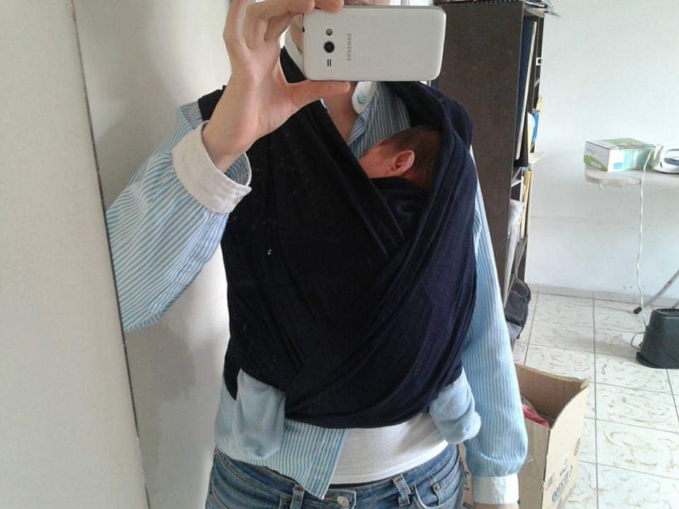 lienzo de tela de algodón largo que se anuda al cuerpo para cargar al bebé